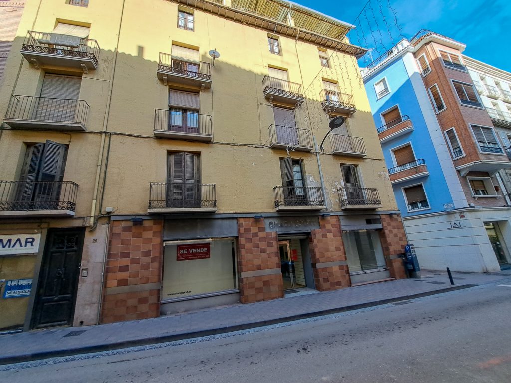 Se vende local comercial  en una ubicación privilegiada, con una superficie de 165m2 aproximadamente.  Este local esquinero, está situado en una zona muy transitada con con amplios escaparates que dan a la Calle General Ricardos y Calle Escuelas Pías de Barbastro.